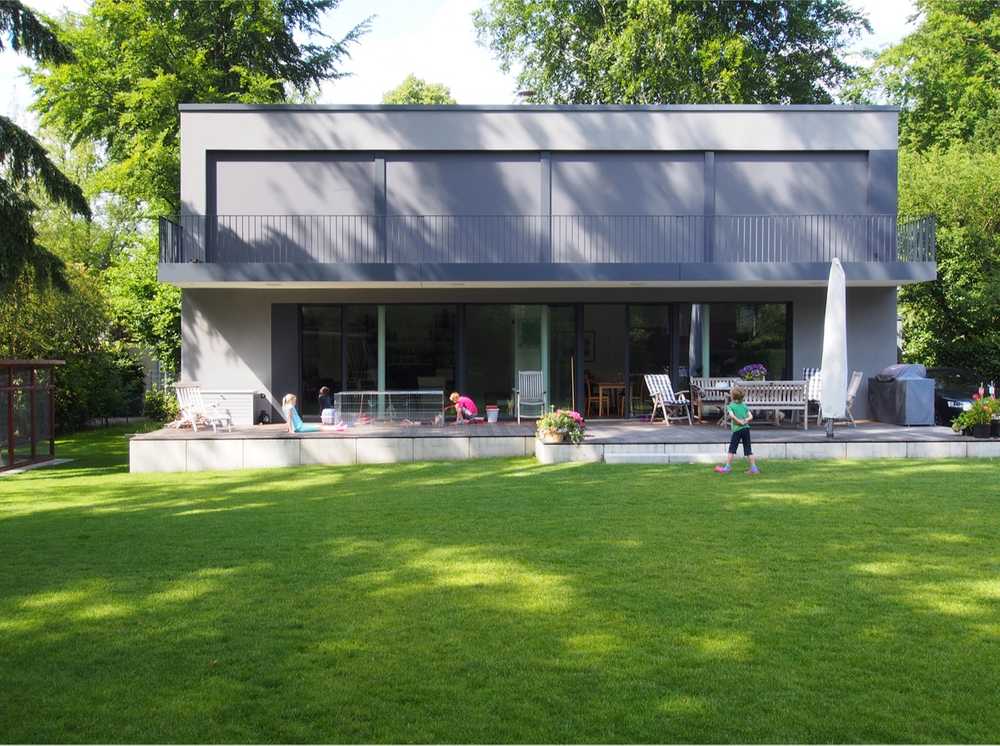 Das Haus öffnet sich im Süden fast vollständig zum parkartigen Gartengrundstück.