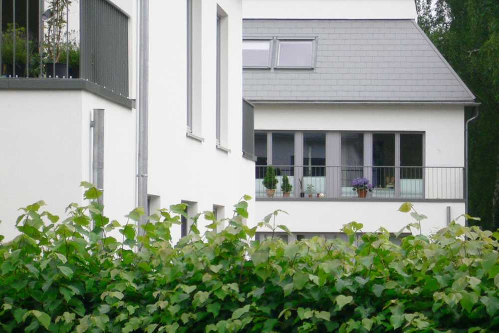 Einfamilienhaus mit Atelierflächen und gartenseitigem Vorbau.