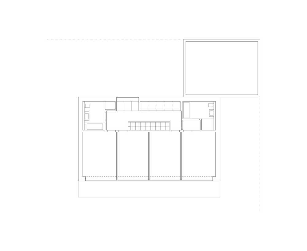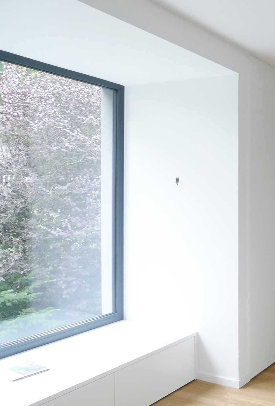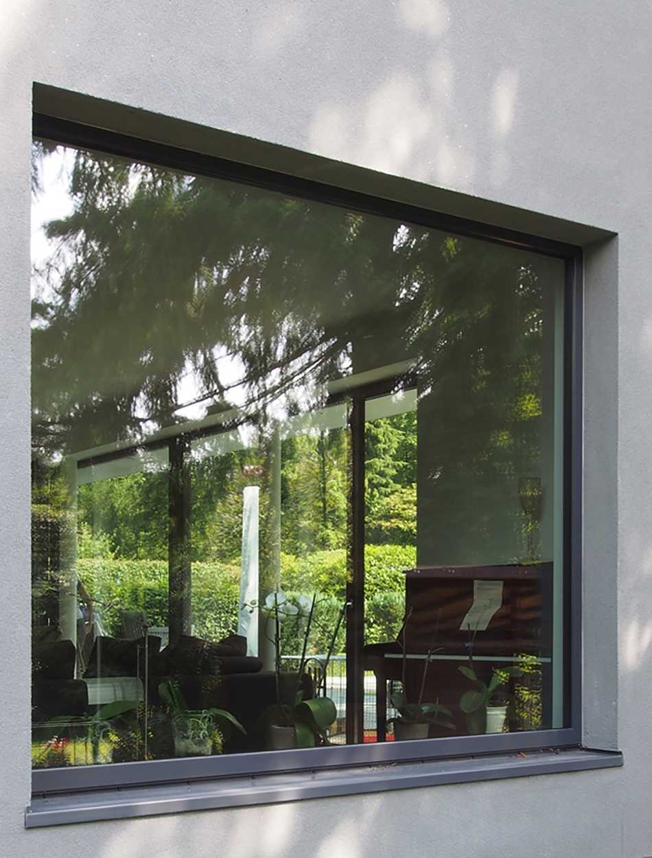 Das für eine fünfköpfige Familie geplante Einfamilienhaus befindet sich am Rande eines durch große, parkartige Gartengrundstücke geprägten Villengebietes im Hamburger Westen. Der zweigeschossige, kubische Baukörper passt sich in die Reihe der Nachbargebäude ein und besetzt so den rückwärtigen Teil des großzügigen Grundstückes. Dreiseitig relativ geschlossen und auf einzelne akzentuierte Blicke beschränkt, öffnet sich im Süden das Haus fast vollständig zum Garten. Im Erdgeschoss erstreckt sich der Raum für Wohnen, Kochen und Essen über die gesamte Breite des Baukörpers. Dieser ist nur durch einen frei stehenden Kamin gegliedert. Es entsteht der Eindruck einer nach Süden zum Garten hin geöffneten Halle, Garten und Gebäude verschränken sich zu einer Einheit. Der im rückwärtigen Teil gelegene Erschließungsbereich verbindet das Erdgeschoss mit den Individualräumen im Obergeschoss. Ein grauer, durchgefärbter, mineralischer Kratzputz und die dunklen großformatigen Metallfenster verleihen dem Haus einen eigenständigen Charakter und heben den Baukörper deutlich von seiner natürlichen, grünen Umgebung ab.