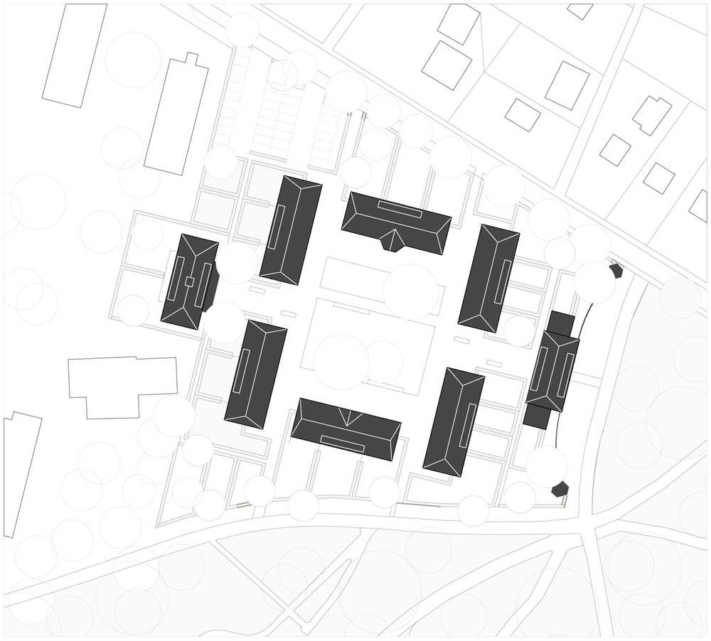 Das denkmalgeschützte Gebäudeensemble aus acht um einen zentralen Hof angeordneten Baukörpern wurde 1922 vom Architekten Kurt Meyer als städtisches Altersheim errichtet. Die leer stehenden Gebäude wurden nach unseren Plänen für die Baugemeinschaft Hütten und Paläste in 29 individuelle und familiengerechte Wohnungen umgebaut. In diesem Zuge werden die Gebäude räumlich erweitert und energetisch ertüchtigt. Der zentrale Hof wird durch sechs eingeschossige Langhäuser gebildet, seine Erschließung erfolgt über zwei zweigeschossige Torgebäude von Osten und Westen. Den Charakter des Ensembles bestimmt ein zu erhaltender alter Baumbestand sowie die roten Klinkerfassaden und Walmdächer der Gebäude.