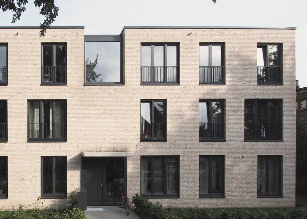 Die Wohnhäuser befinden sich in einer heterogenen Umgebung in Hamburg-Stellingen. Dieser Stadtteil ist geprägt durch zahlreiche Grünflächen, besonders durch den Tierpark Hagenbeck. So bilden auch die von uns geplanten Baukörper einen eigenen grünen Hofraum aus. Die drei nahezu identischen Mehrfamilienhäuser wurden im Effizienzhaus 55-Standard errichtet und verfügen jeweils über neun Wohnungen mit zwei bzw. vier Zimmern für Familien und Paare.