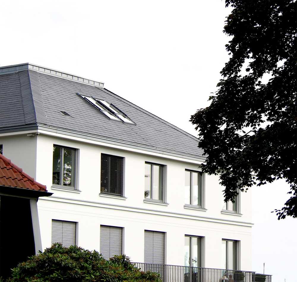Unmittelbar über dem Elbufer wurde ein Mehrfamilienhaus mit sieben Wohnungen, 1.600 qm Wohnfläche und großer Tiefgarage errichtet. Gewünscht wurden bei klassisch zurückhaltendem Erscheinungsbild ein in Bezug auf Energieeffizienz und Nachhaltigkeit optimiertes Gebäude, welches sich trotz des umfangreichen Gebäudevolumens selbstverständlich in die Umgebung und den Baumbestand einfügt. Die klassische Gliederung des Baukörpers, der Verzicht auf weit auskragende Balkone, zurückhaltende Details und eine klare Linienführung sowie handwerkliche Präzision in der Umsetzung ermöglichen ein klassisch zurückhaltendes Gebäude, das höchsten ökologischen und technischen Ansprüchen gerecht wird.